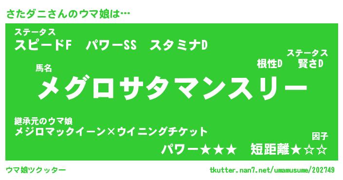 | ファンタジー風あだ名 | 『サタフェル』『エターナルサタダニー』 |