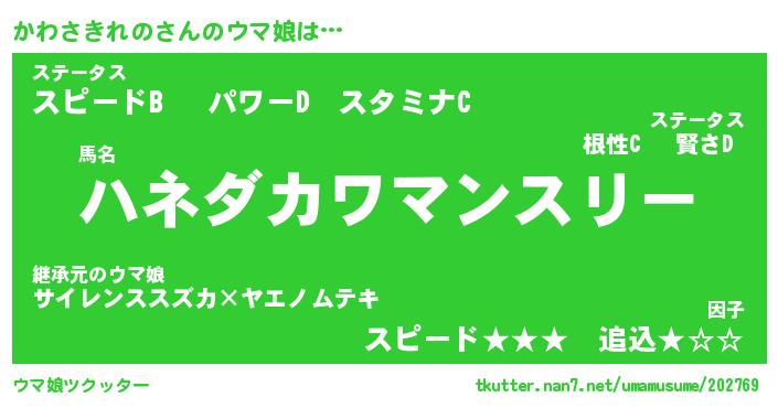 | 自動車の名前っぽいあだ名 | 『カワティマ』『カスラー』『デミカ』 |