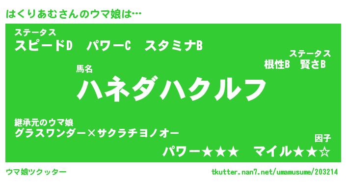 | ファンタジー風あだ名 | 『ハクフェル』『エターナルハクリアムー』 |