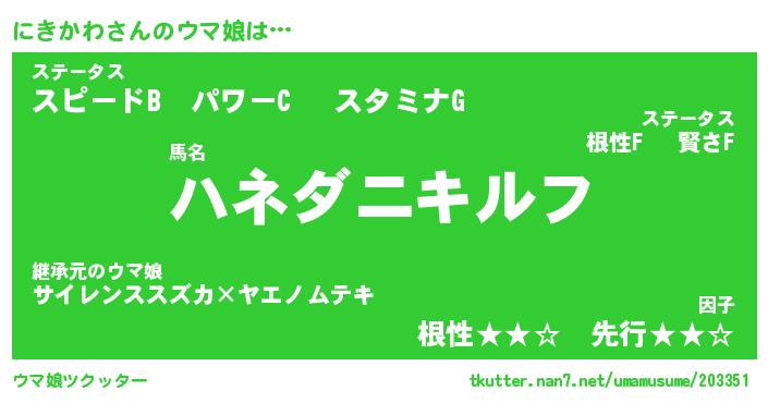 | 意味不明あだ名 | 『ペロリンにきかわ』『永久保存にきかわ』 |