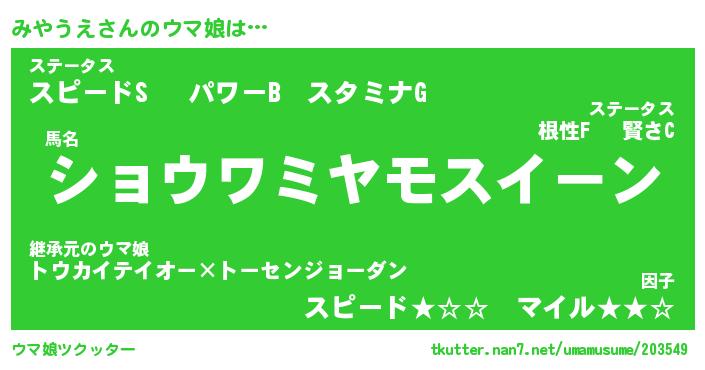 | 肩書あだ名 | 『みやうえ社長令嬢』『みやうえ大統領』 |