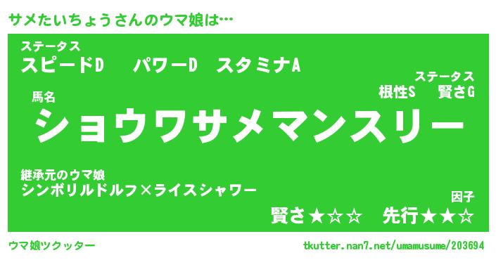 | 可愛いあだ名 | 『サんサん』『サメちー』 |