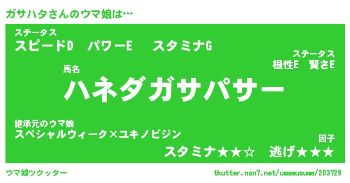 | ポケモン風あだ名 | 『ガサチュウ』『ガサハダネ』 |