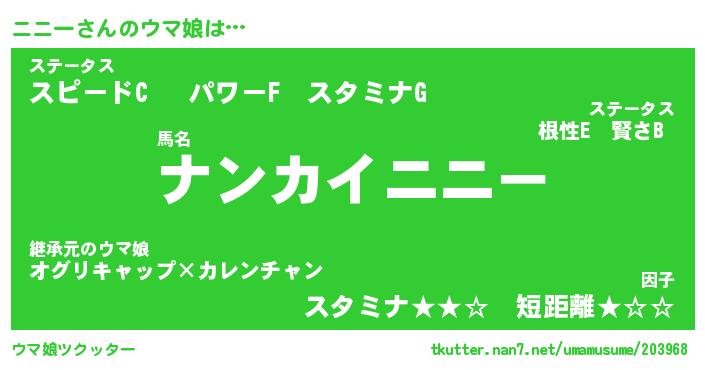 | ポケモン風あだ名 | 『ニニチュウ』『ニニーダネ』 |