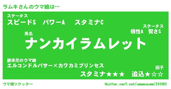 | ヒーロー風カッコイイあだ名 | 『スーパーラムキ』『ウルトララムキマン』 |