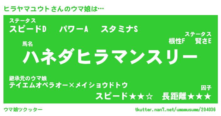 | 欧米人風あだ名 | 『マイケルヒラヤマユウト』 |