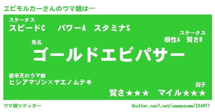 | ヒーロー風カッコイイあだ名 | 『スーパーエビモルカー』『黄金騎士エビ』 |