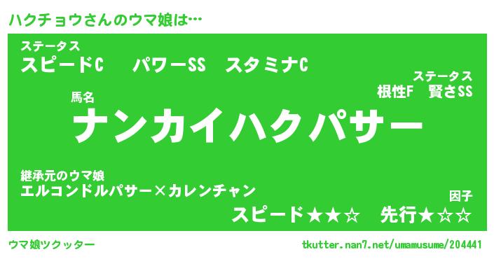 | ポケモン風あだ名 | 『ハクチュウ』『ハクチダネ』 |