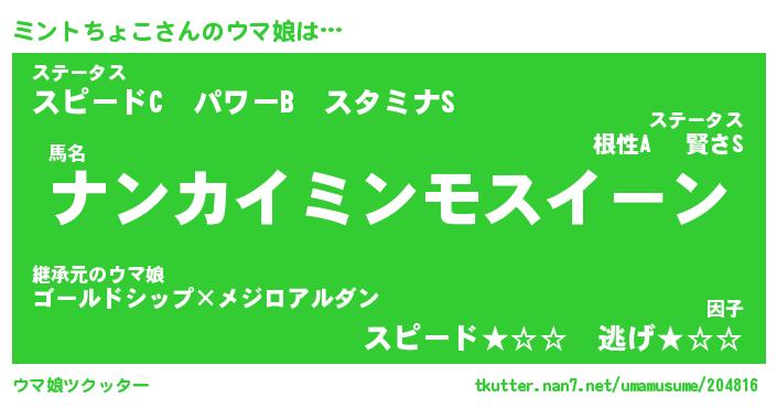 | ポケモン風あだ名 | 『ミンチュウ』『ミントダネ』 |