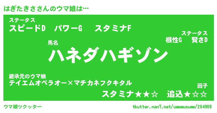 | 自動車の名前っぽいあだ名 | 『ハギティマ』『ハスラー』『ハンR』 |