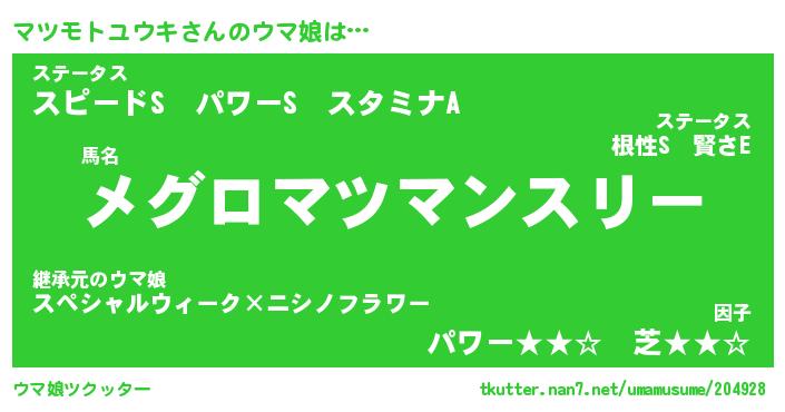 | ヒーロー風カッコイイあだ名 | 『スーパーマツモトユウキ』 |