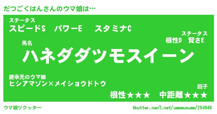 | ポケモン風あだ名 | 『ダツチュウ』『ダツゴダネ』 |