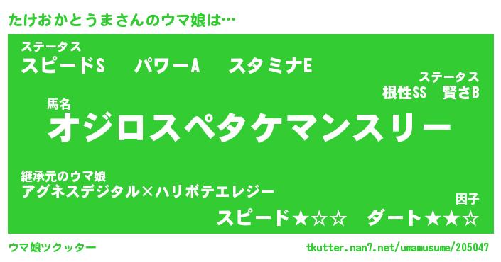 | 意味不明あだ名 | 『ペロリンたけおかとうま』 |