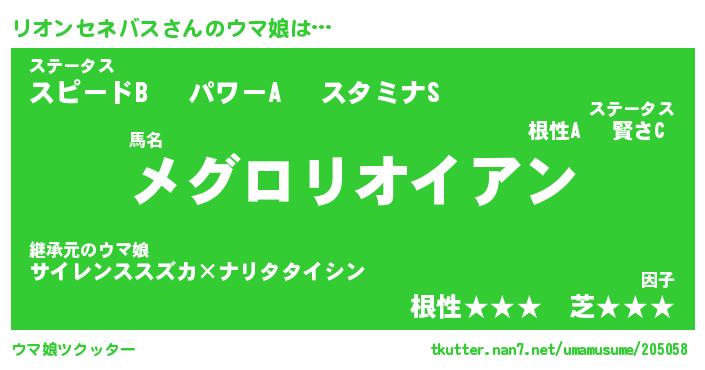 | 欧米人風あだ名 | 『マイケルリオンセネバス』 |