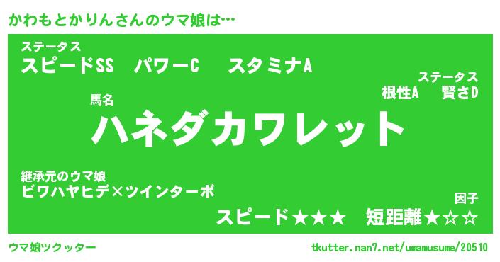 | 伝説のあだ名 | 『封印されし竜騎士かわもとかりん』 |