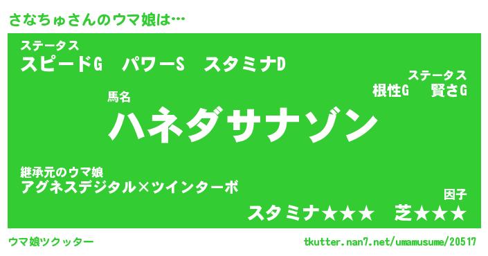 | 欧米人風あだ名 | 『マイケルさなちゅ』『ウサインさなちゅ』 |