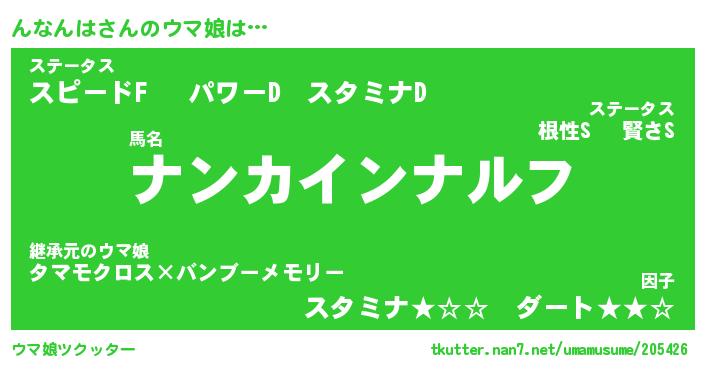 | ポケモン風あだ名 | 『ンナチュウ』『ンナンダネ』 |