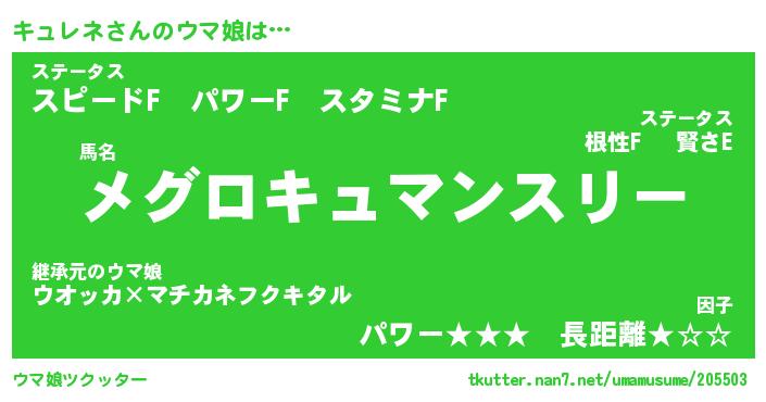| 意味不明あだ名 | 『ペロリンキュレネ』『永久保存キュレネ』 |
