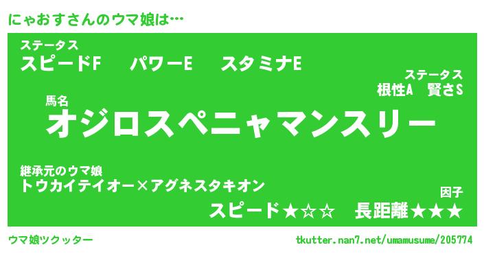 | 欧米人風あだ名 | 『マイケルにゃおす』『ウサインにゃおす』 |