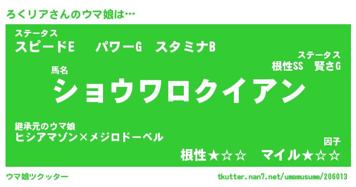 | ポケモン風あだ名 | 『ロクチュウ』『ロクリダネ』 |