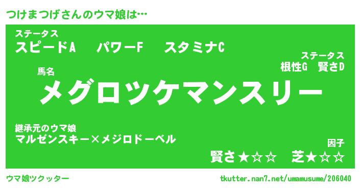 | ポケモン風あだ名 | 『ツケチュウ』『ツケマダネ』 |