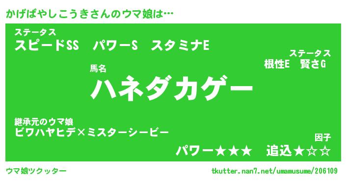 | 欧米人風あだ名 | 『マイケルかげばやしこうき』 |