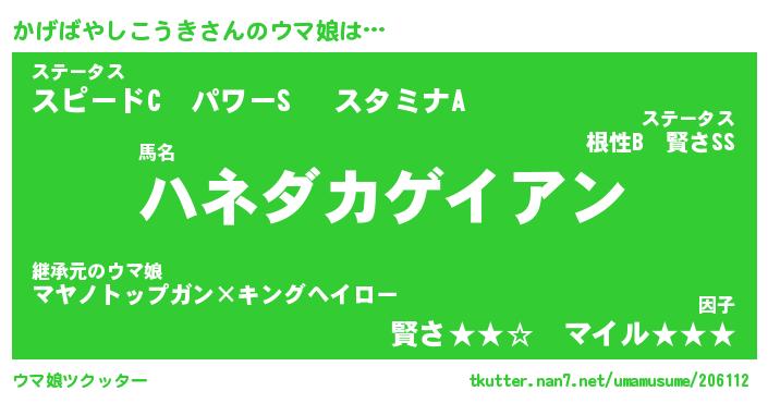 | 2回繰り返すあだ名 | 『かげかげ』『かかげげ』『うねうね』 |