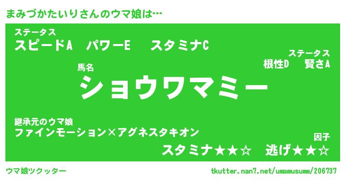 | 自動車の名前っぽいあだ名 | 『プリマミ』『マクア』『ヴィッマ』 |