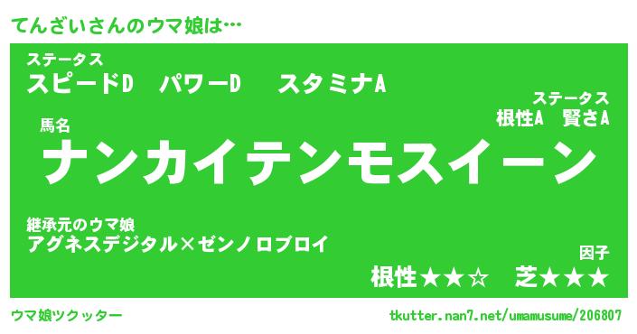 | 意味不明あだ名 | 『ペロリンてんざい』『永久保存てんざい』 |