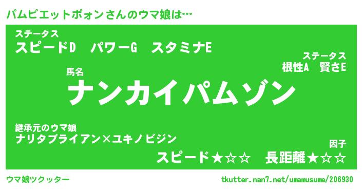 | ヘコむあだ名 | 『パムふぇ~』『牛乳』『パムっ子』 |