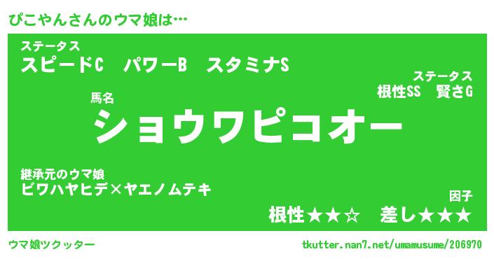 | 意味不明あだ名 | 『ペロリンぴこやん』『永久保存ぴこやん』 |