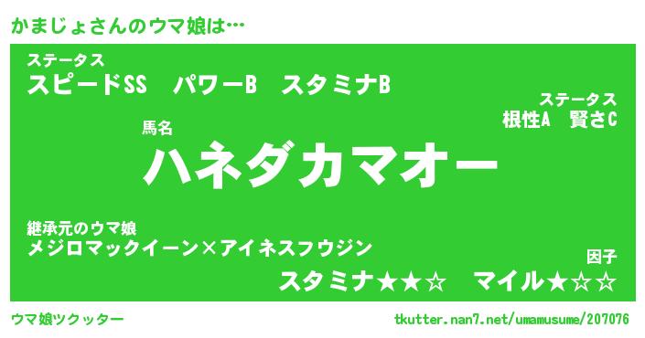 | 欧米人風あだ名 | 『マイケルかまじょ』『ウサインかまじょ』 |