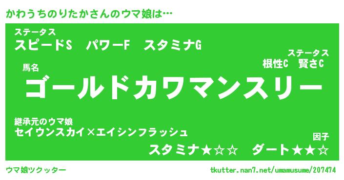 | ポケモン風あだ名 | 『カワチュウ』『カワウダネ』 |