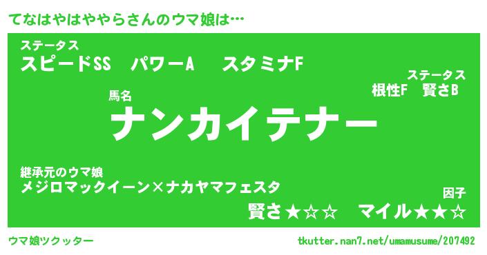 | ポケモン風あだ名 | 『テナチュウ』『テナハダネ』 |