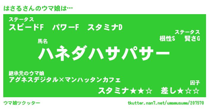 | 自動車の名前っぽいあだ名 | 『ハサティマ』『ハスラー』『ハント』 |