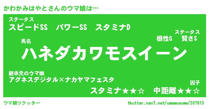| ポケモン風あだ名 | 『カワチュウ』『カワカダネ』 |