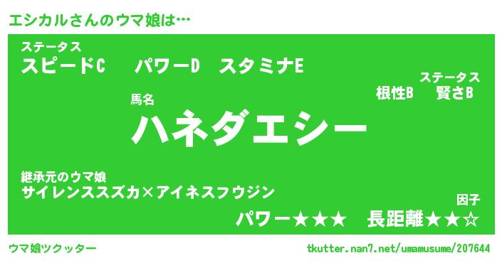 | ヘコむあだ名 | 『エシにー』『豆乳』『エシっ子』 |