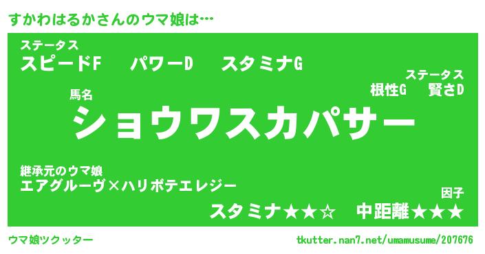 | ヒーロー風カッコイイあだ名 | 『スーパースカワハルカ』『炎刃騎士スカ』 |