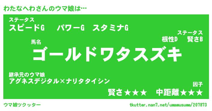 | 自動車の名前っぽいあだ名 | 『ワタティマ』『ワスラー』『ワント』 |