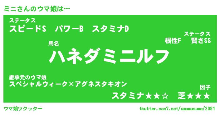 | 2回繰り返すあだ名 | 『ミニミニ』『ミミニニ』『うずうず』 |