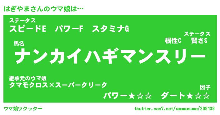 | 自動車の名前っぽいあだ名 | 『プリハギ』『ハクア』『ハント』 |