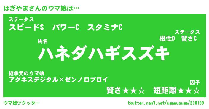 | 自動車の名前っぽいあだ名 | 『ハギティマ』『ハクア』『ヴィッハ』 |