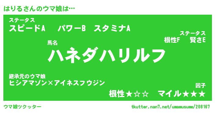 | ファンタジー風あだ名 | 『ハリフェル』『エターナルハリルー』 |