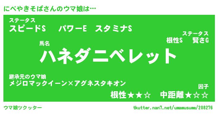 | ヘコむあだ名 | 『にべもー』『つくし』『にべ太郎』 |