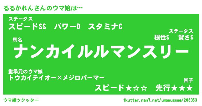 | 自動車の名前っぽいあだ名 | 『プリルル』『ルスラー』『デミル』 |
