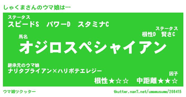 | 欧米人風あだ名 | 『マイケルしゃくま』『ウサインしゃくま』 |
