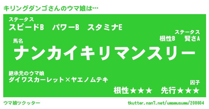 | 男性向けラノベタイトル風あだ名 | 『キリングダンゴの憂鬱』 |