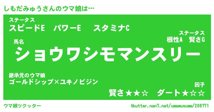 | 胡散臭い通販商品みたいなあだ名 | 『必ず成功する霊験あらたかなお札…その名も「しもだみゅう」』 |