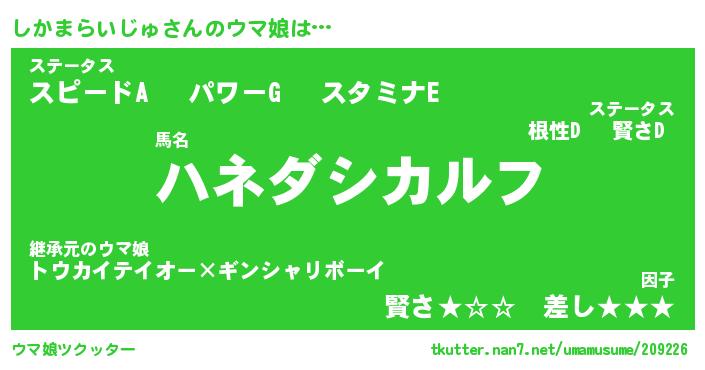 | 自動車の名前っぽいあだ名 | 『シカティマ』『シクア』『ヴィッシ』 |