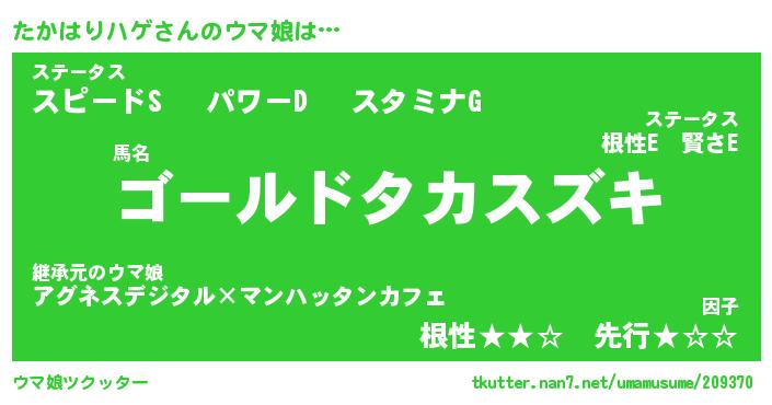 | ヒーロー風カッコイイあだ名 | 『スーパータカハリハゲ』『黄金騎士タカ』 |